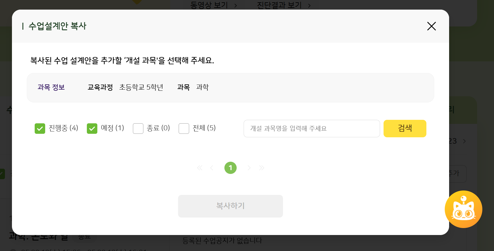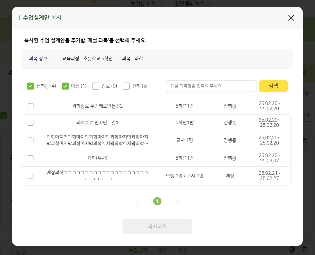 | Description | 150%이상의 화면 배율에서 '수업설계안 복사 팝업'의 스크롤이 미노출되는 현상 | ||||