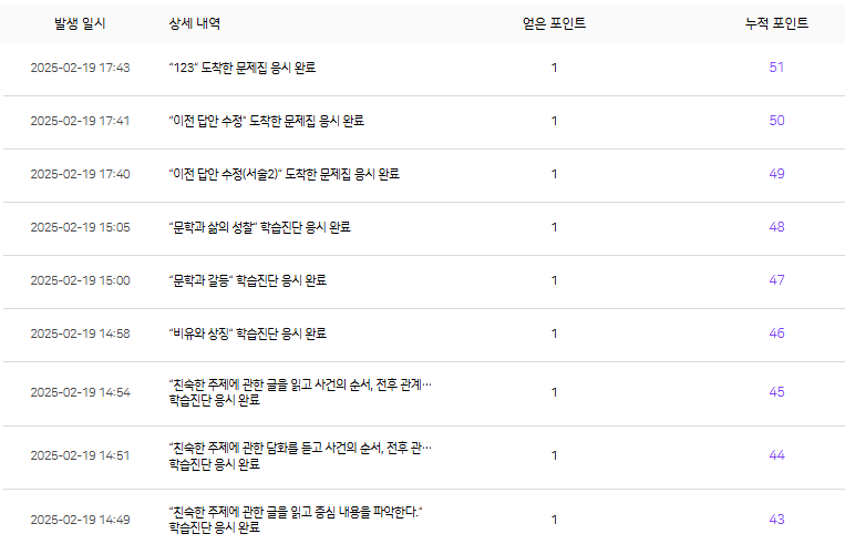 | Steps To Reproduce | 1. jw01 로그인 후 학생 리포트 확인 2. 제이디자인중학교 2-1-1 학생으로 로그인 3. 나의 프로필 레벨 > 포인트 현황 확인 | ||||