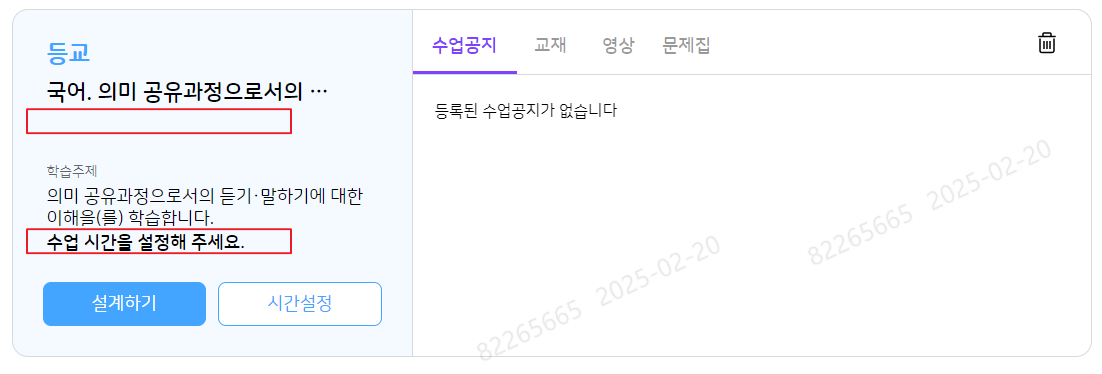 | Description | 복사된 수업설계안 카드에 '수업 시간을 설정해 주세요' 문구 위치가 퍼블과 상이함 (시간 안내 위치에 문구 노출) | ||||