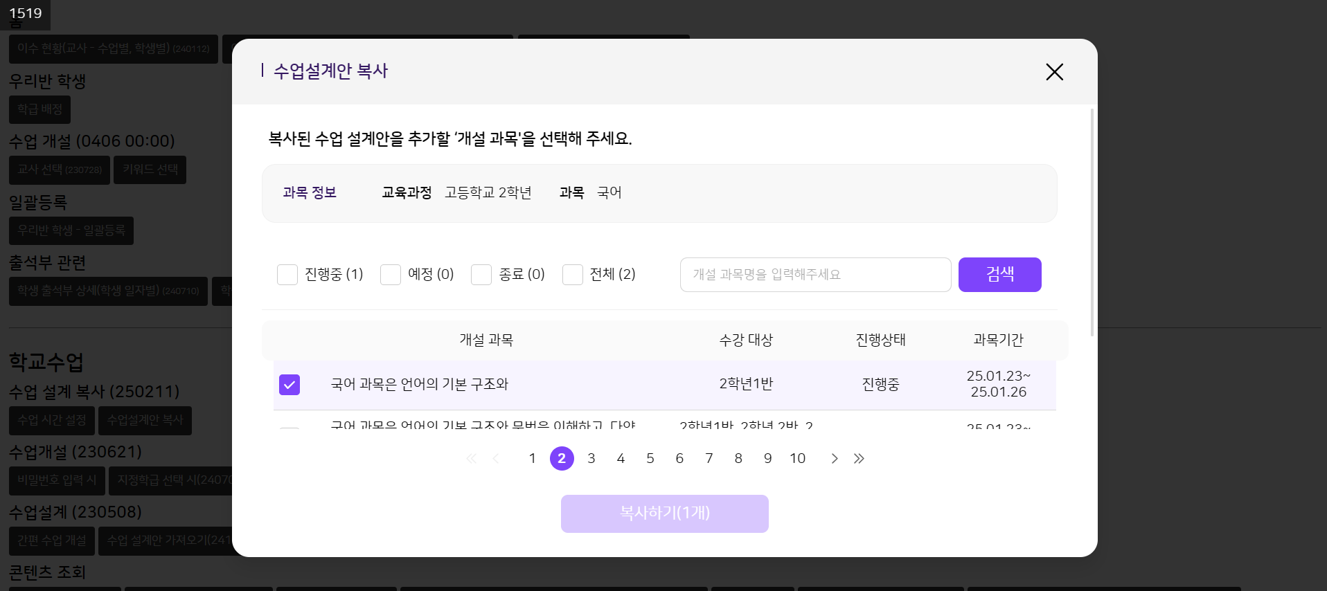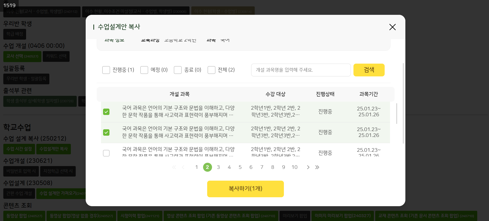 | Steps To Reproduce | 1. 수업 복사하기 클릭 2. 수업 복사 팝업에서 개설 과목 체크박스 클릭 | ||||