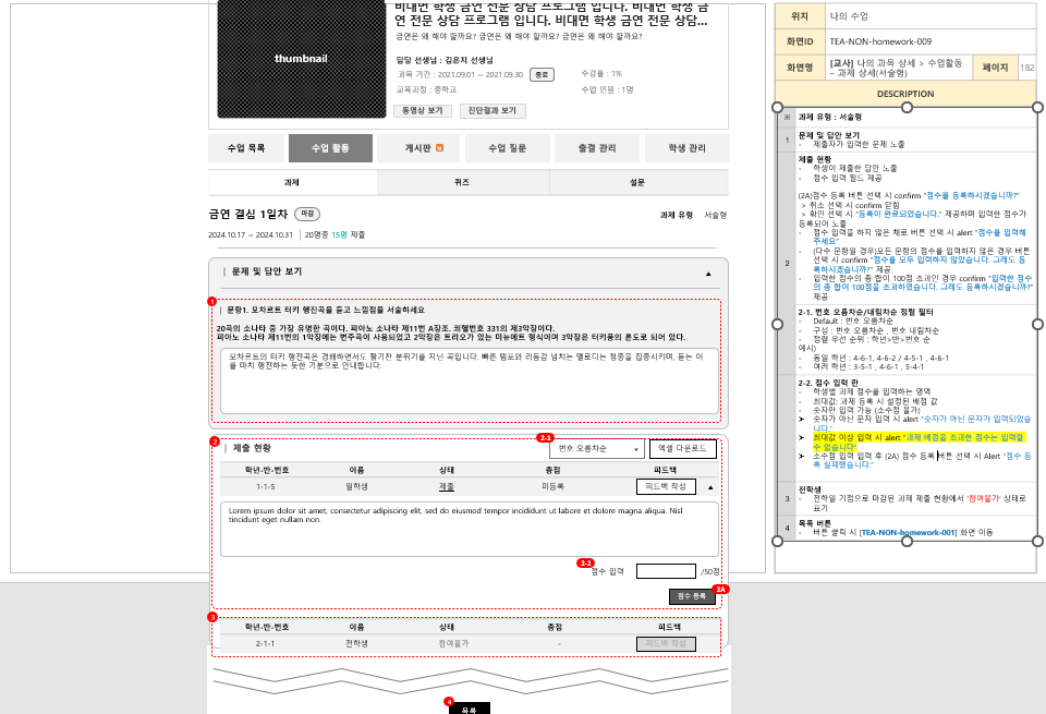 이슈 관련 기획 확인시 상세 기획 미존재. 참고 기획서 : (2025-08-01)_KT LanEdu_화면설계서_02.myclass_v.3.3.3 -> 172p, 182p 이미 부여할 점수가 100 점이 넘어도 경고 팝업만 뜨고 확인 버튼 클릭시 점수부여가 됩니다. 과제 생성시 설정한 점수보다 초과 점수부여 가능 여부에 대한 기획 문의드립니다. |