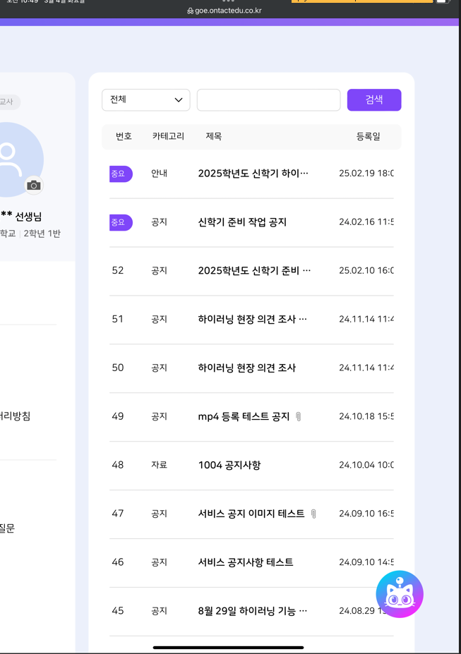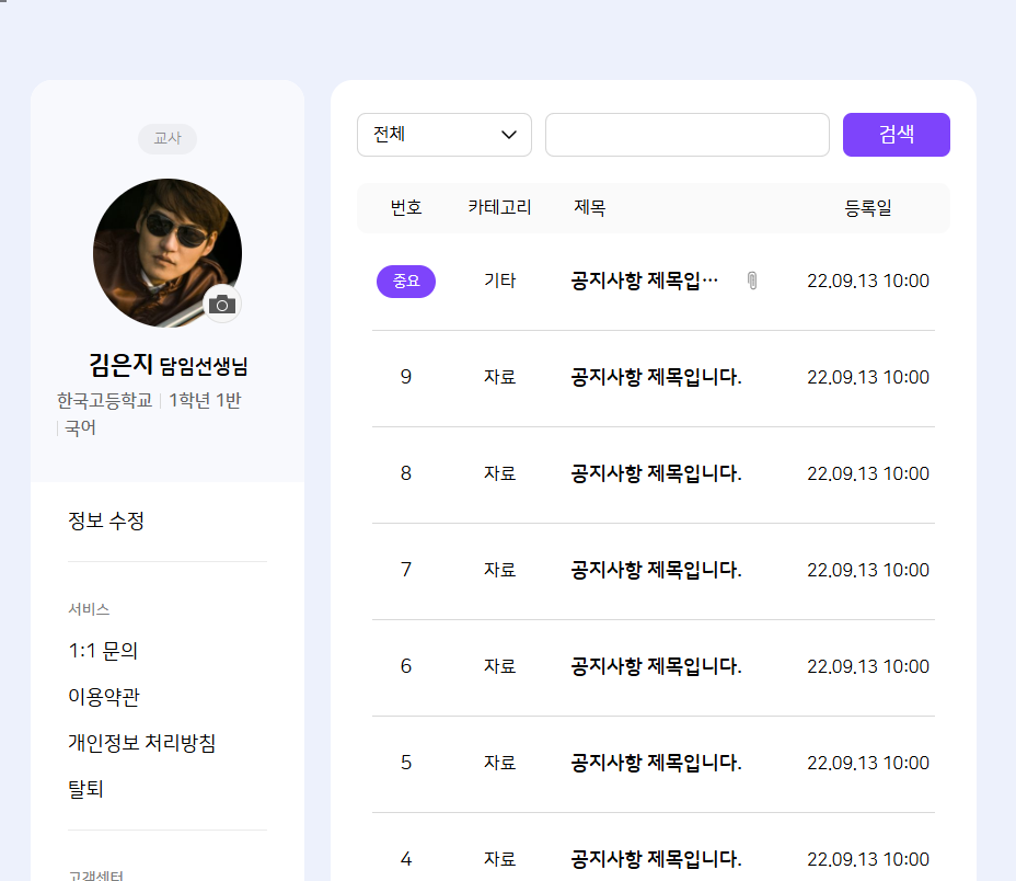 [퍼블] 중/고등: https://uxstorydev.cafe24.com/highlearning/pc_list_v2.html 초등: https://uxstorydev.cafe24.com/highlearning/pc_list_v2.html 마이페이지 > 공지사항 깃랩에도 업로드 완료 하였습니다. |
