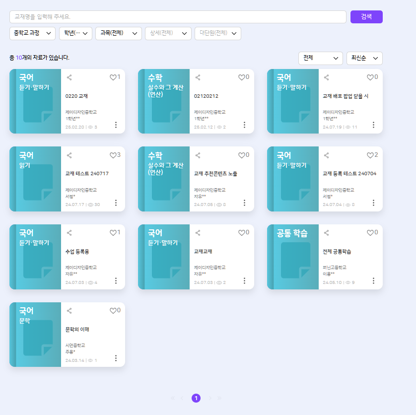 내 콘텐츠 : - 교재 : 국영수과 클릭 안됨 - 문제집 : 국어, 수학, 과학 클릭은 되지만 분류 표기 삭제됨 - 문제 상세 클릭됨 - 문제 및 해설보기 정상 동작 |