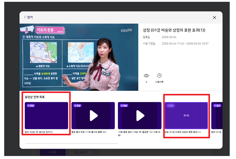 과목 상세 - 동영상 보기 시 수학, 영어는 플레이 버튼 미노출, 클릭 시 무반응 |
