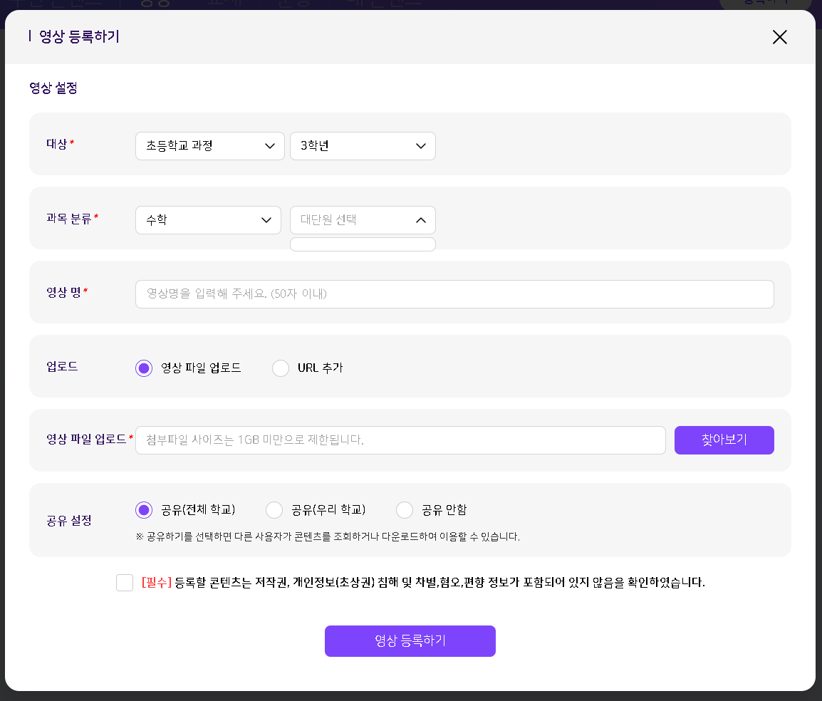 영상 : 학습 콘텐츠 - 영상 - 영상 등록하기에 초3 수학 선택시 대단원 분류 없음 학습 콘텐츠 - 영상 - 영상 등록하기에 초4 수학 분류가 없음 교재 학습 콘텐츠 - 영상 - 영상 등록하기에 초3 수학 선택시 대단원 분류 없음 학습 콘텐츠 - 영상 - 영상 등록하기에 초4 수학 분류가 없음 학습 콘텐츠 - 영상 - 영상 등록하기에 중1 수학 선택시 대단원 분류 없음 |