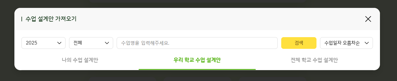 | Steps To Reproduce | 1. 교사 로그인 2. 수업 설계 > '수업 설계안 가져오기' 버튼 클릭 | ||||