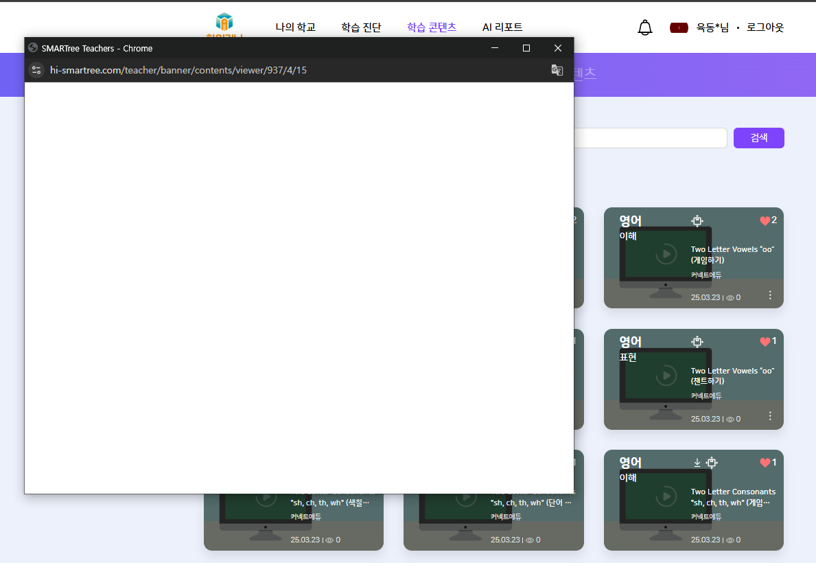 | Steps To Reproduce | 1. 학습 콘텐츠 > 커넥트에듀 2. Two Letter Vowels “oo” (색칠하기) 클릭 | ||||