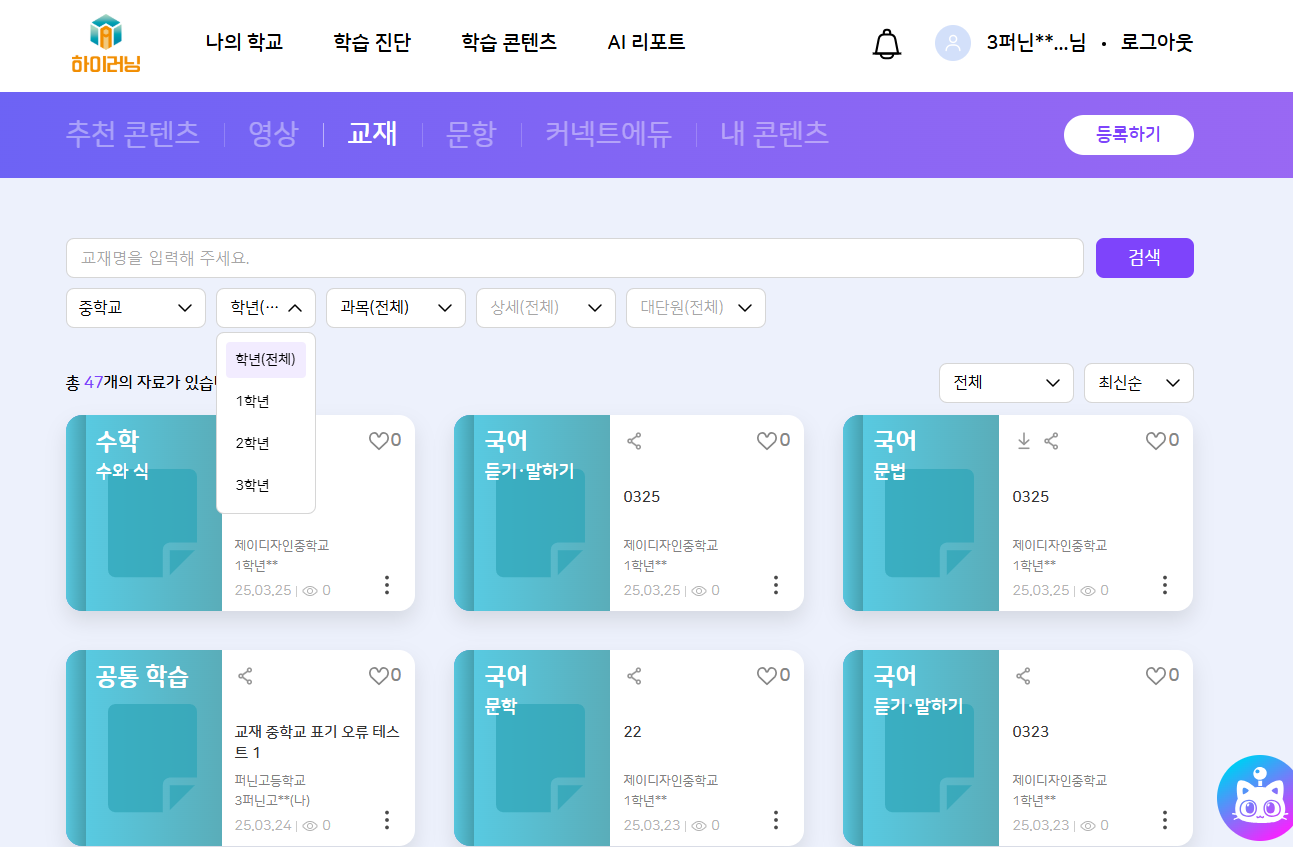 | Steps To Reproduce | 학습 콘텐츠 > 교재 > 중학교 필터 선택 | ||||