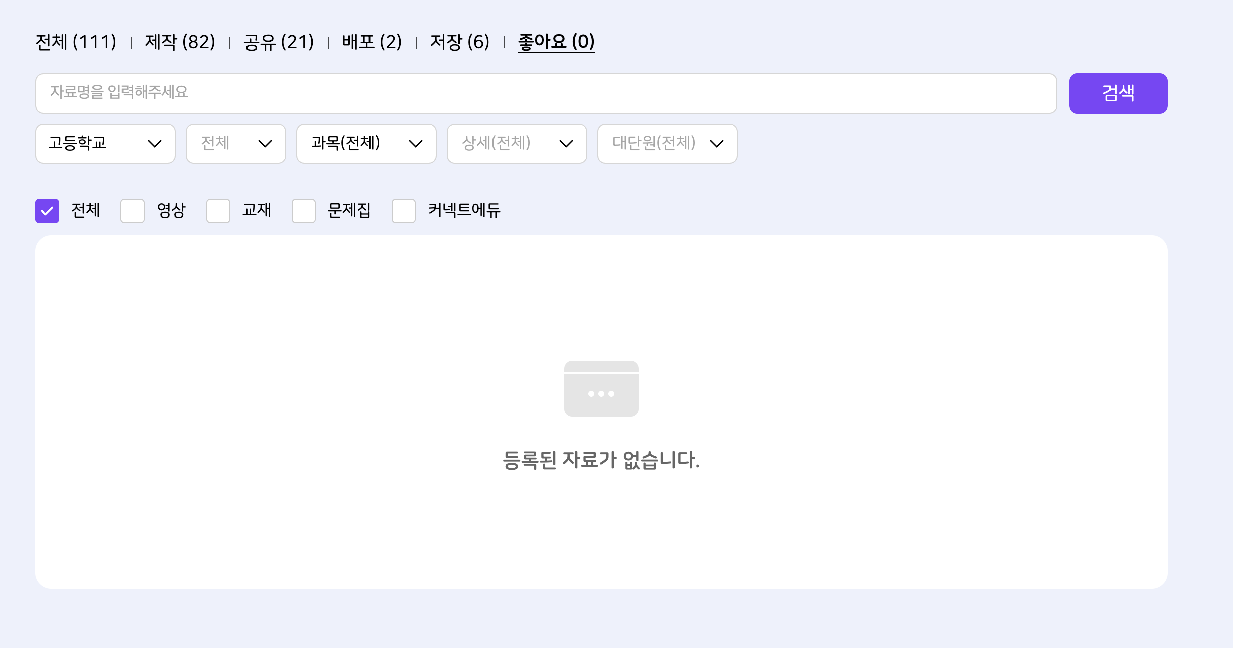 | Steps To Reproduce | 1. 내 콘텐츠 > 전체,제작,공유,배포,저장,좋아요 클릭 | ||||