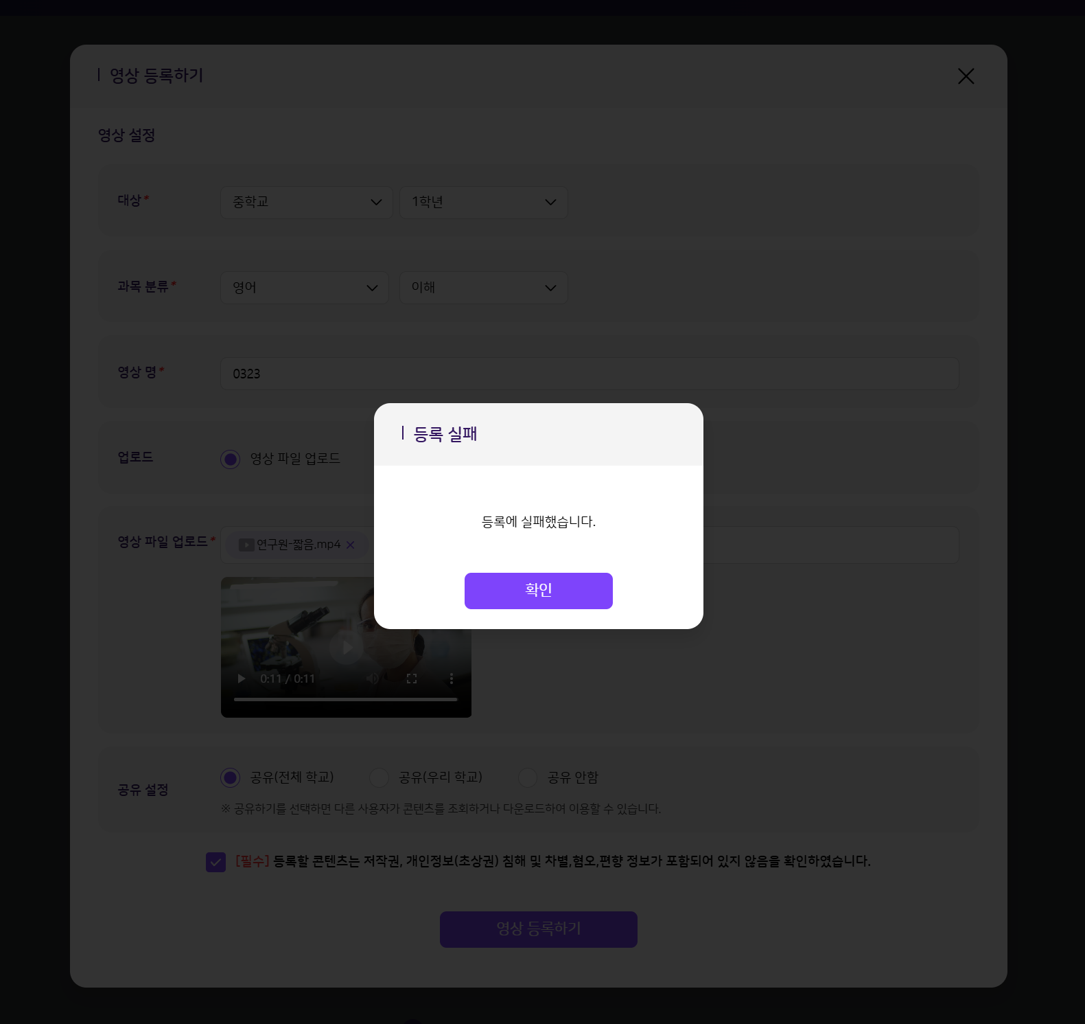 | Description | (ECP)학습 콘텐츠 - 영상 등록 실패 | ||||