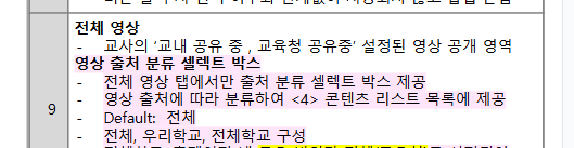 | Description | [ECP] 수업 설계 > 영상 > 직접 등록 화면 > 영상 콘텐츠 조회 > 영상 콘텐츠 조회 팝업 > 영상콘텐츠 셀렉트 박스 분류 기획과 다름 기획 (2025-03-20) myclass p122 : 전체, 우리학교, 전체학교 tb ecp : 전체, 우리학교, 전체학교, EBS, e학습터, 경기도 교육청 | ||||