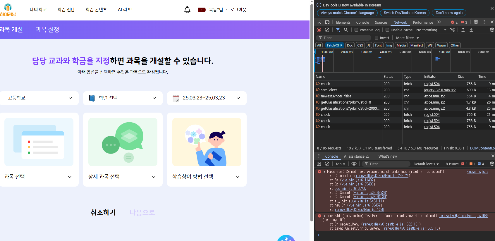 | Description | 고등학교 과목 개설 초기화면 진입 시 과목 선택 드롭다운이 동작하지 않는 현상 | ||||