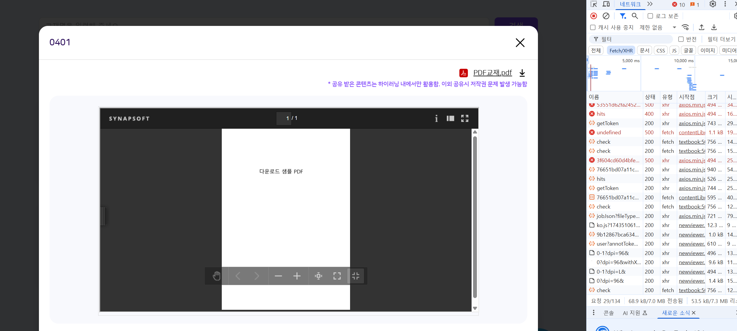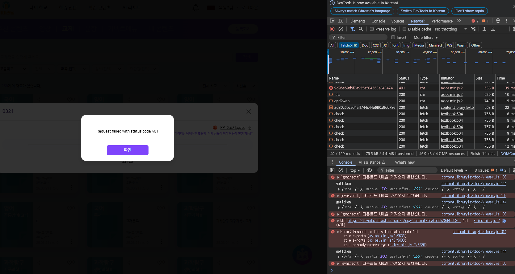 | Description | 교재 미리보기 시 'Request failed with status code 401' 팝업 노출 | ||||