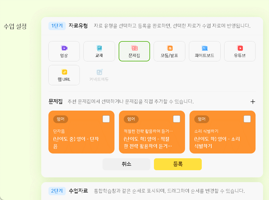 | Description | (ECP)수업 설계 - 영상/문제집 추천 자료 영역에서 콘텐츠 미선택 -> 등록시 팝업 노출 안함 | ||||