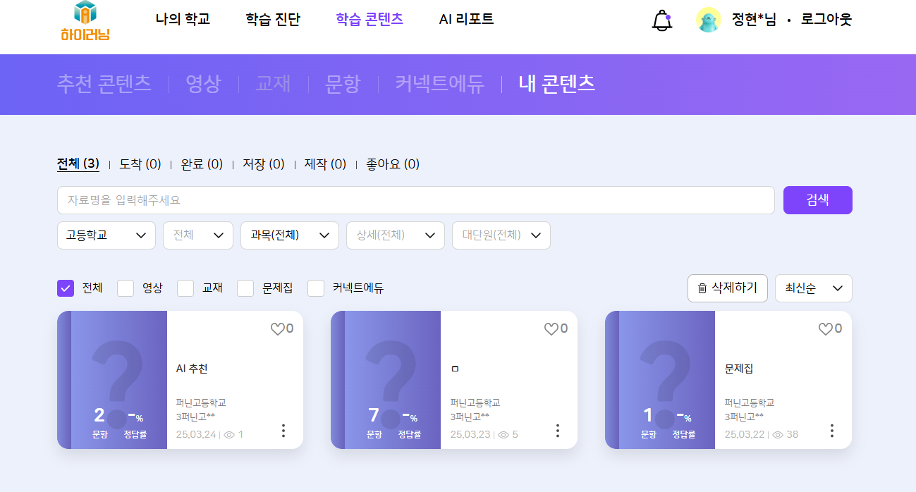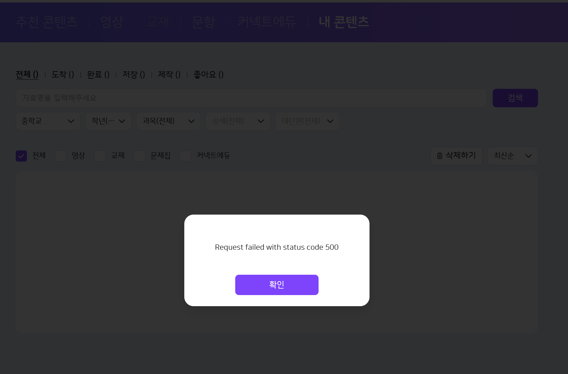 | Steps To Reproduce | 1. 학생 로그인 2. 내 콘텐츠 진입 | ||||