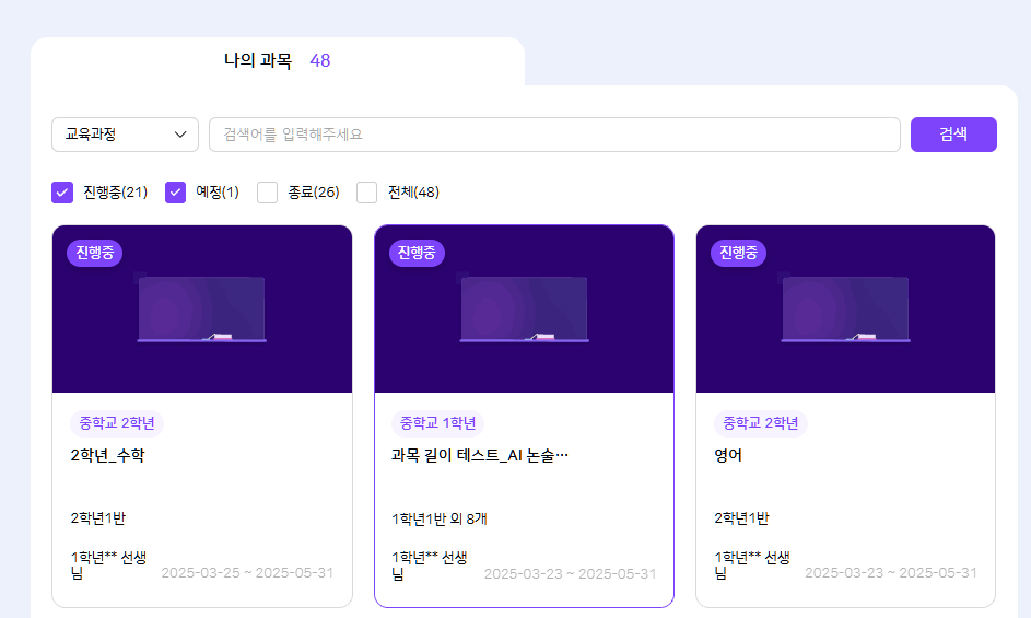 | Steps To Reproduce | 1. 학생 로그인 2. 나의 학교 > 나의 수업 > 수업 현황 탭 클릭 | ||||