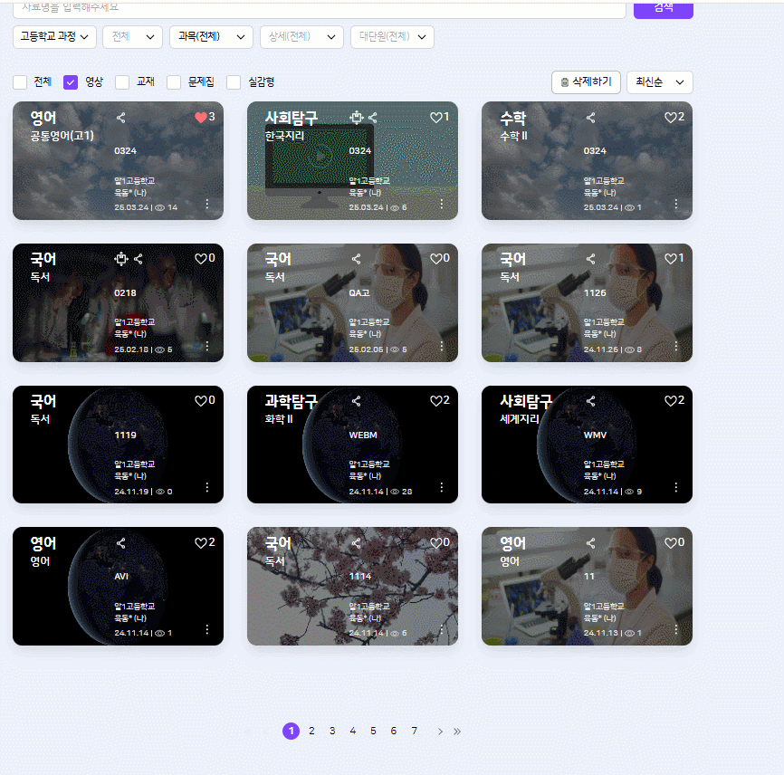 특정 콘텐츠 (공유, 배포 없는) 삭제 시 메인으로 이동하는 현상이 있습니다. watest11 내콘텐츠 > 영상 > { 24.11.19 /1119 / 국어 독서 } |
