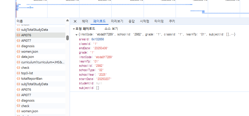 ECP와 TB에서 같은 증상입니다. watest9 (고등) 계정은 정상이고 jw01 (중등) 계정은 동일합니다. |