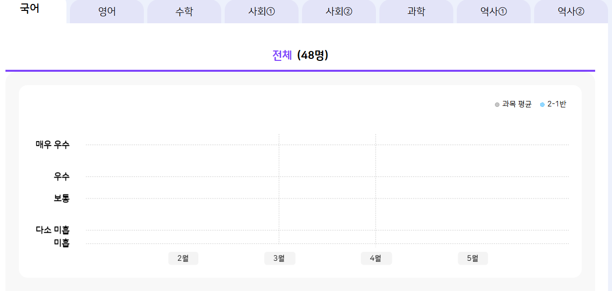 | Steps To Reproduce | 1. 교사 로그인 > 종합 리포트 > 과목별 리포트 보기 | ||||