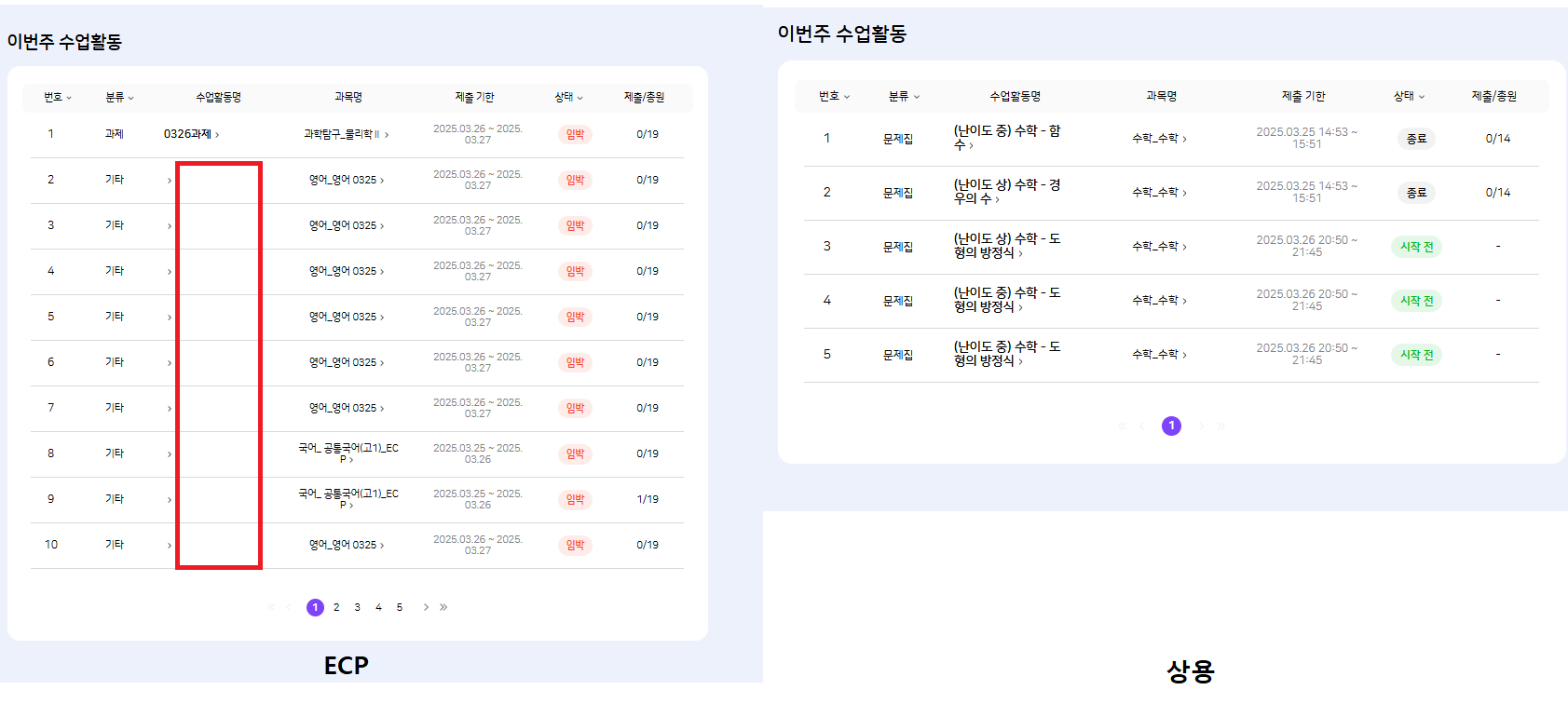 | Summary | 0000693: [ECP] 나의 교실 > 이번주 수업활동이 정상적으로 노출되지 않는 현상 | ||||