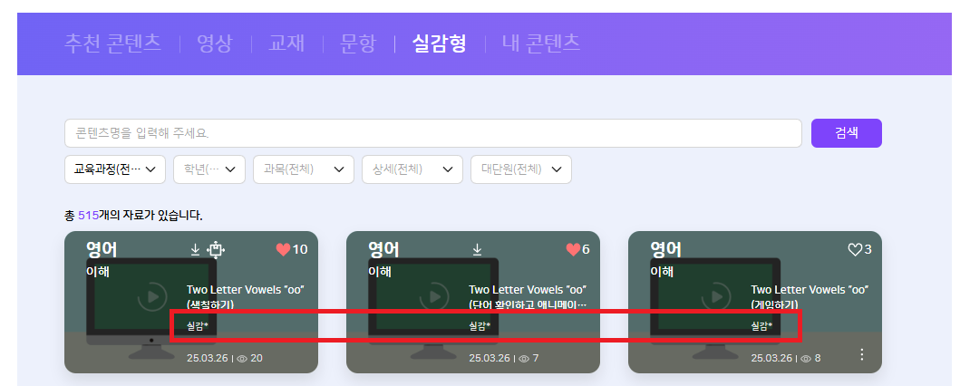 | Description | 실감형(커넥트에듀) 자료의 출처명도 '실감형'으로 노출되는 현상 탭 명칭 : 실감형 현 콘텐츠의 출처명은 '커넥트에듀'로 노출되어야 합니다. | ||||