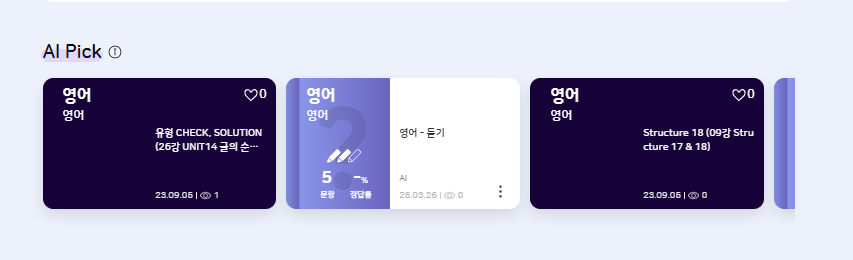 | Steps To Reproduce | 1. 학습 콘텐츠 > 추천 콘텐츠 2. AI Pick 영상 확인 | ||||