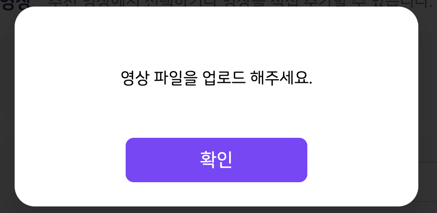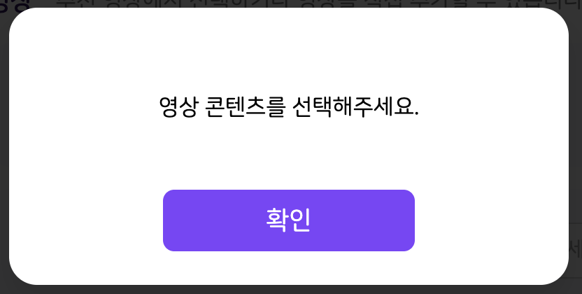 현재 TB 영상 미등록 alert 화면입니다. 기획과 다르다면 reopen 부탁드립니다. |