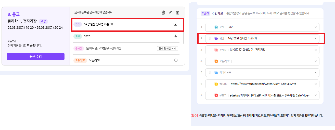 | Description | 수업카드와 수업 수정 화면의 자료 순서 불일치 | ||||