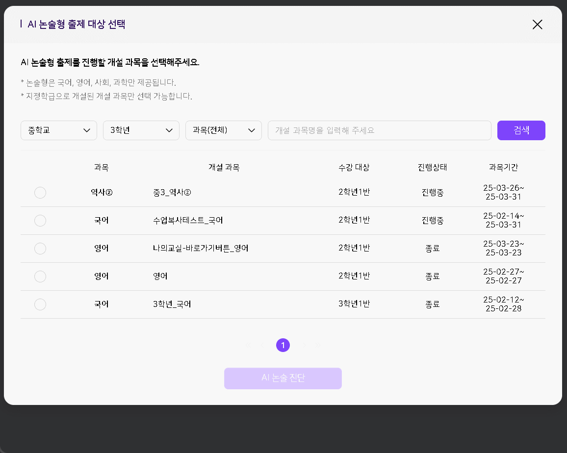 | Description | (ECP)문항-논술형 출제 교과과정-학년-과목 필터 조정시 데이터가 잘 안나오는 현상 | ||||