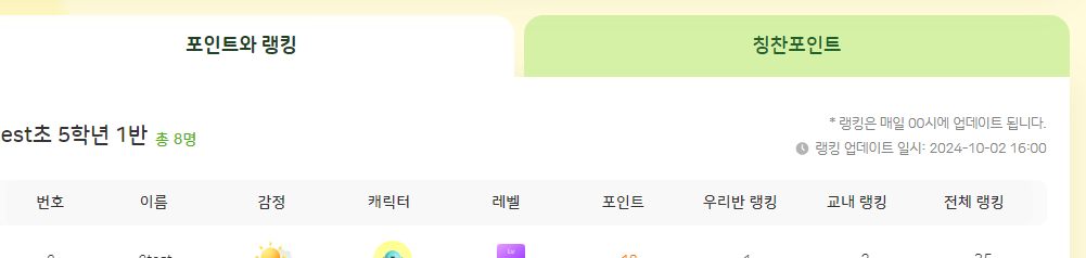| Steps To Reproduce | 1. 교사 로그인 2. 플로팅 버튼 > 우리반 포인트와 랭킹 진입 3. 우측 상단 랭킹 업데이트 일시 확인 | ||||