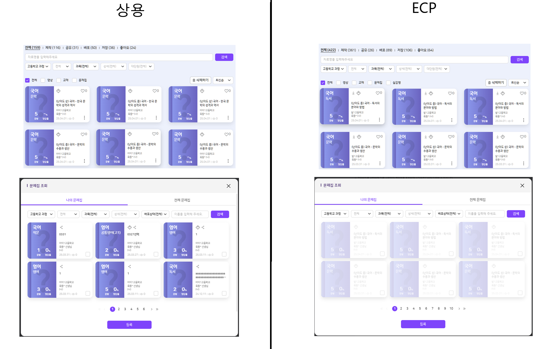 | Steps To Reproduce | [상용, ECP] 1. watest11 로그인 2. 내 콘텐츠 > 문항 체크 3. 수업 설계 > 문제집 > 콘텐츠 조회 비교 | ||||