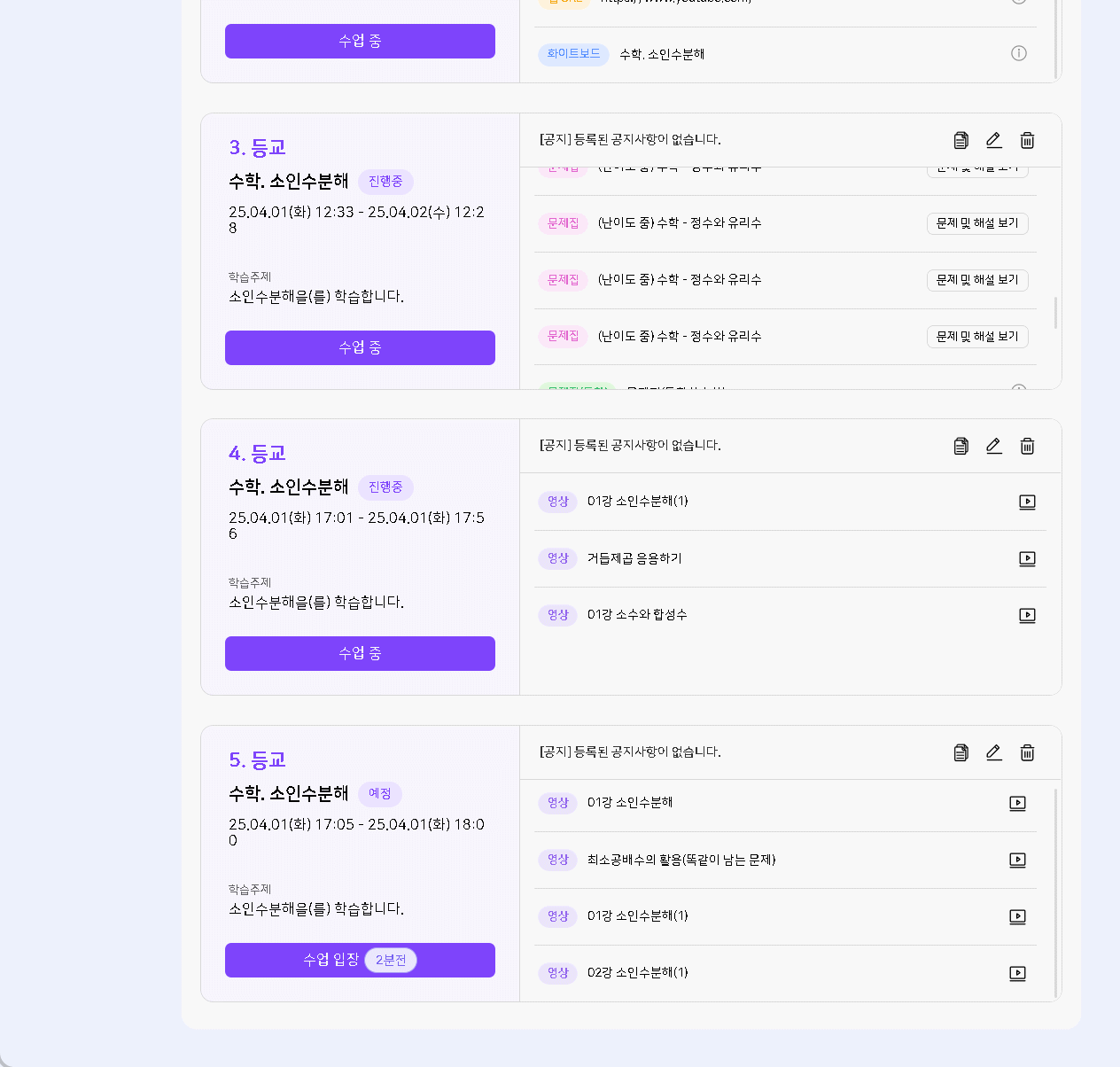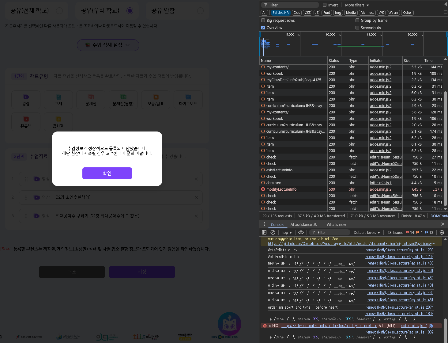 | Steps To Reproduce | 1. 나의 수업 - 과학 - 2.등교수업 2. 나의 수업 - 수학 - 4. 등교수업 | ||||