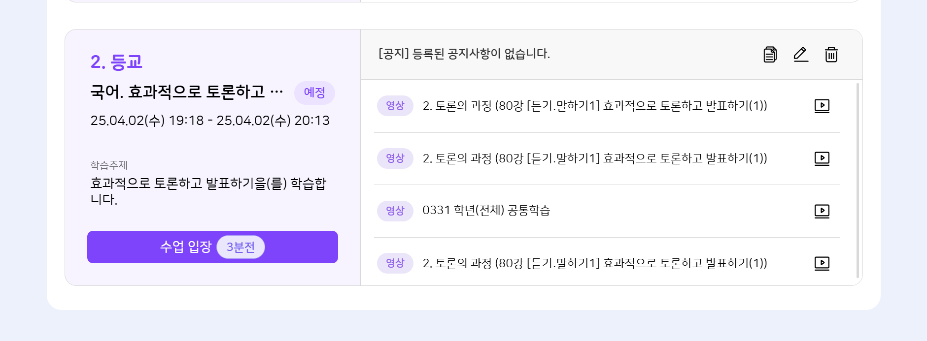 이슈 리포트 후 교육 체계 변경으로 동일 영상으로 확인 불가. 다만, 현재까지 동일 현상이 재현되지 않아 해결로 처리하겠습니다. |
