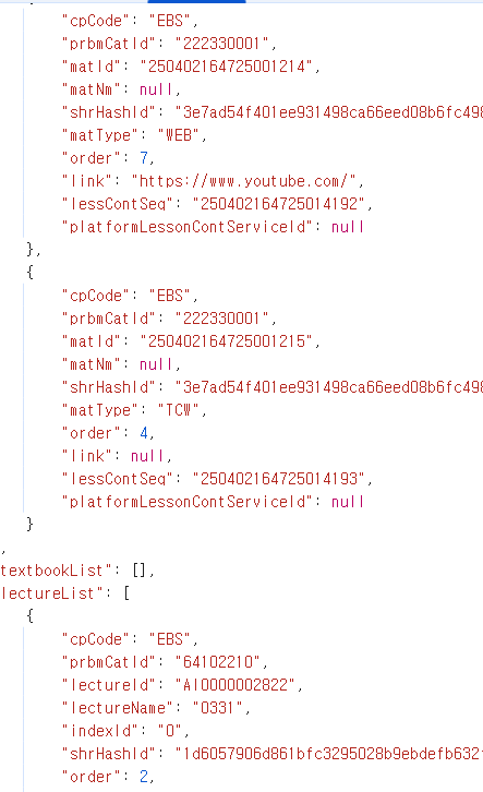 요청 로그 정보입니다. - req TC-17436129002LJ42 ▶ 요청 URI: /cms/api/v1/lesson-plans/modify | HTTP Method: POST ▶ POST 요청 바디: {"platformId":"goe","subPlatformId":"goe_tc","lessonPlanId":"250403015114001378","lessonPlanName":"문학. 한국 서정 문학의 성격","shrHashId":"14d1a0bc72d80826e88f294be0feb2530e2af275acb8d780f7bf5fe214f9111f","shrStatus":"02","shrKey":"e8c8d1e864000233","clsType":"OF","prbmCatId":2007583,"matList":[{"matType":"WB","matId":"250403015427001384","order":3,"lessContSeq":"250403015427014437","platformLessonContServiceId":"20243"}],"textbookList":[],"lectureList":[],"workbookList":[{"workbookId":54663,"order":1,"lessContSeq":"250403015114014432","platformLessonContServiceId":"20238"}]} - res (timestamp=2025-04-03T01:55:00.259683158, status=200, message=success, data=EcpLessonResDto[lessonPlanId=250403015114001378]) |