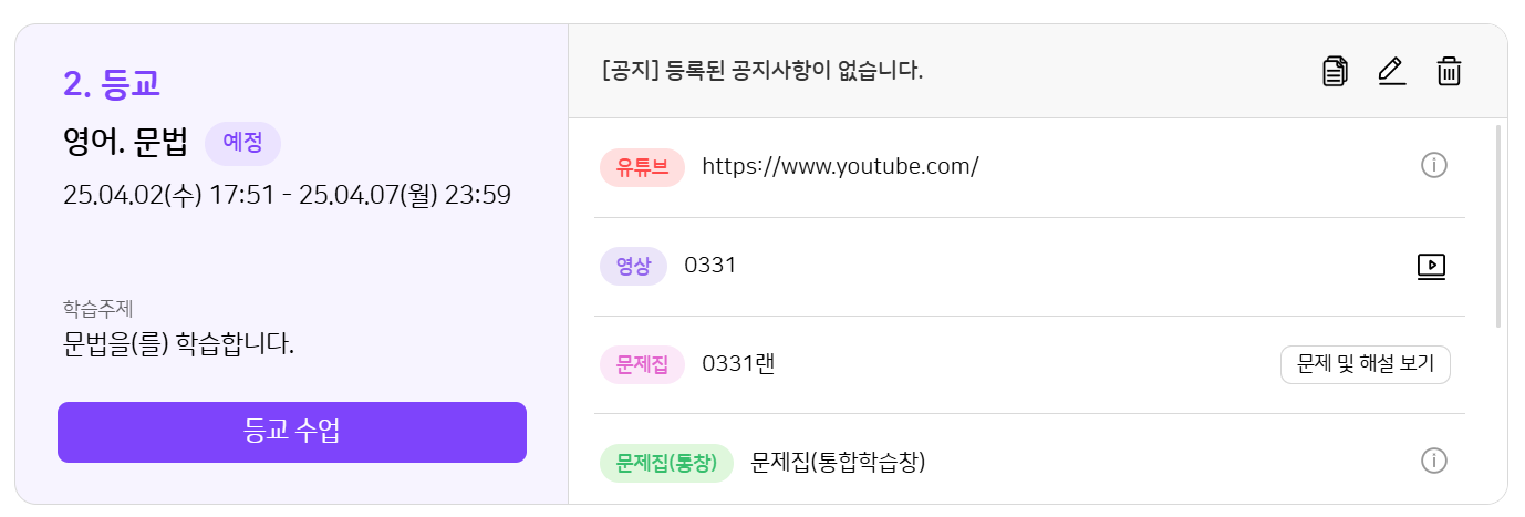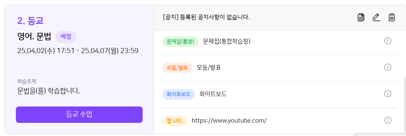 | Steps To Reproduce | 1. 나의 수업 > 콘텐츠 추가 후 수업 생성 > 수업 수정 > 콘텐츠 순서 변경 > 수업 카드에서 변경된 순서 확인 2. 해당 수업 통창 진입 > 콘텐츠 순서 변경 되었는지 확인 3. 통창에서 콘텐츠 순서 변경 > 통창 종료 후 FO 화면 새로고침 > 수업 카드 콘텐츠 순서 확인 | ||||
