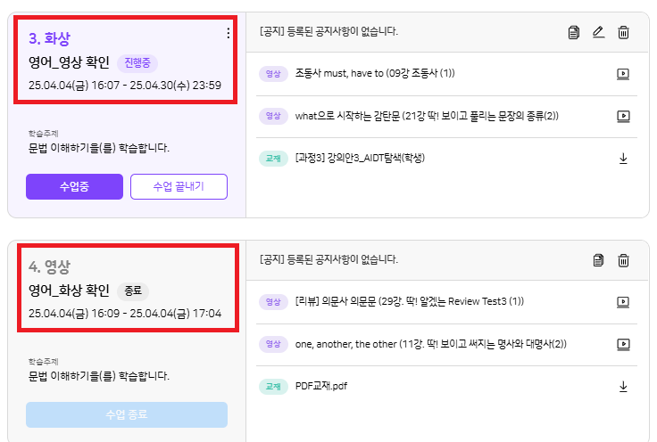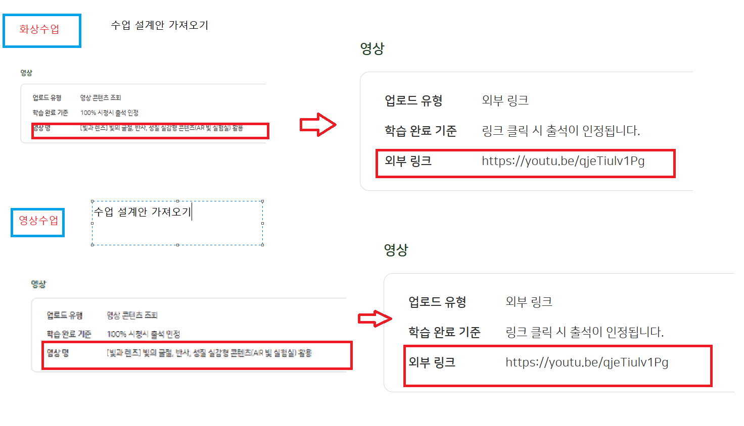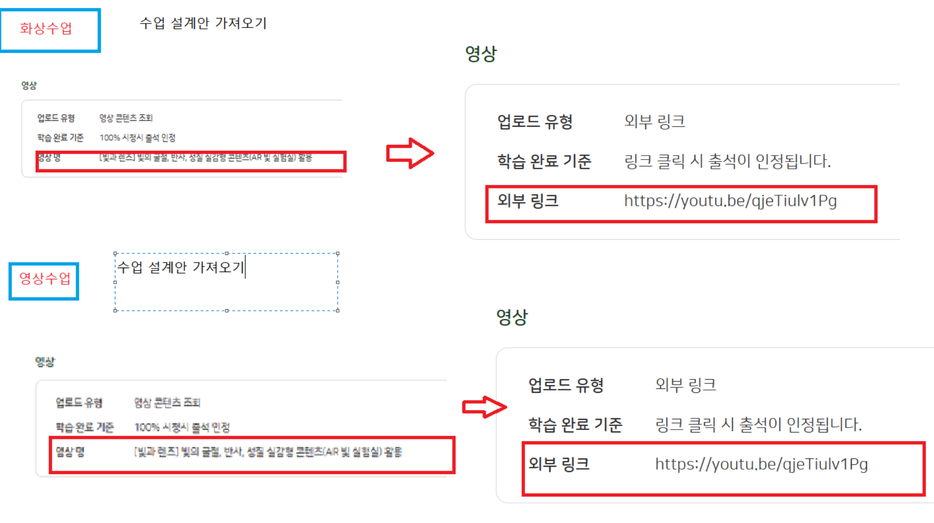 | Description | 마이그레이션 전, 후를 비교했을 때 수업 자료가 상이한 현상(화상수업, 영상 수업) | ||||