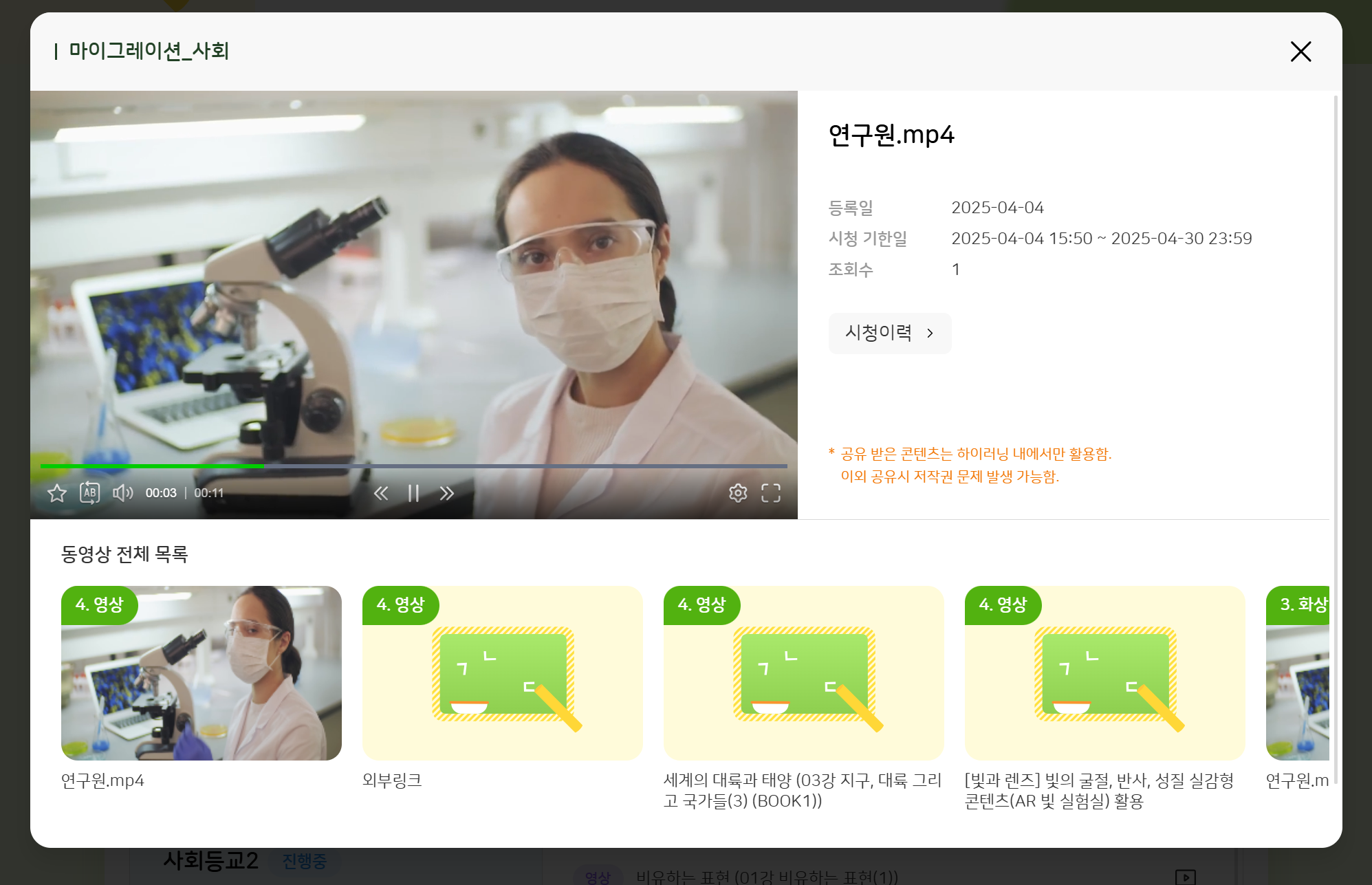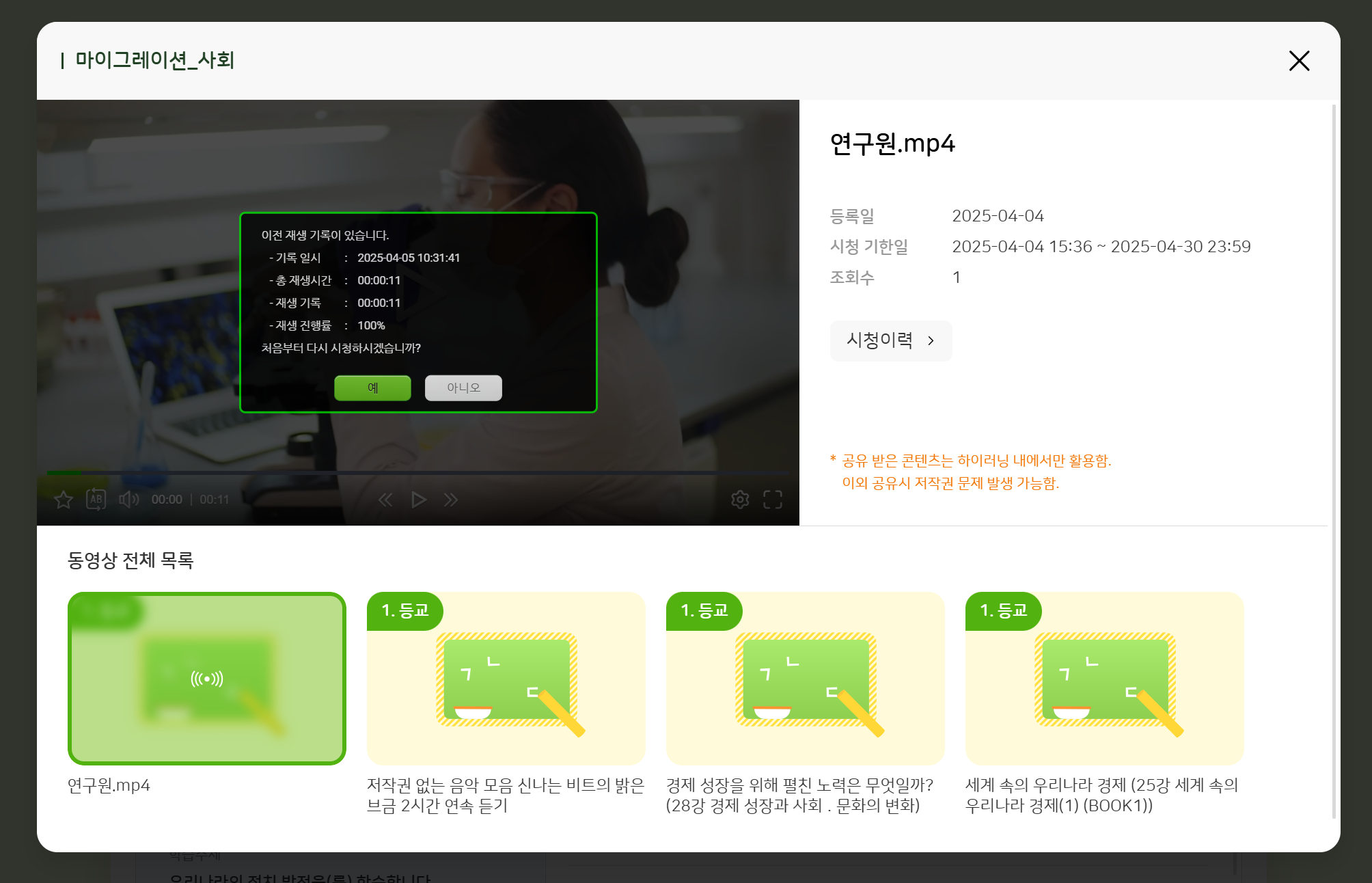 | Description | [ECP][마이그레이션1차] 마이그레이션 후에 영상 썸네일 미노출되는 현상 1. 나의 수업 > 동영상 보기 : 직접 업로드한 영상 제외하고 모든 영상 썸네일 미노출 2. 나의 수업 > 수업카드 영상 뷰어 버튼 : 모든 영상 썸네일 미노출 | ||||