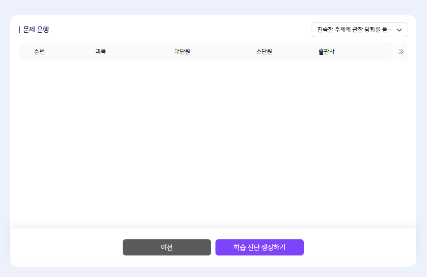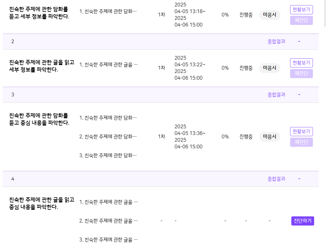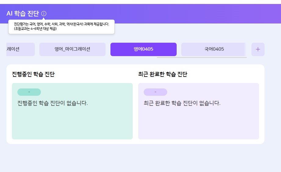 | Steps To Reproduce | 1. AI 학습 진단 2. 영어 과목 (신규/기존) 3. 진단하기 생성 시도 | ||||