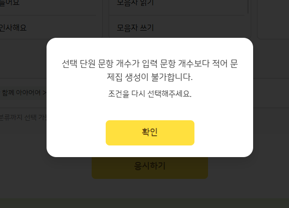 | Description | 학생이 랜덤 문제 생성 시 오류 팝업 노출 초 1~6, 중1 : 오류 팝업 중2~3, 고 : 정상 | ||||