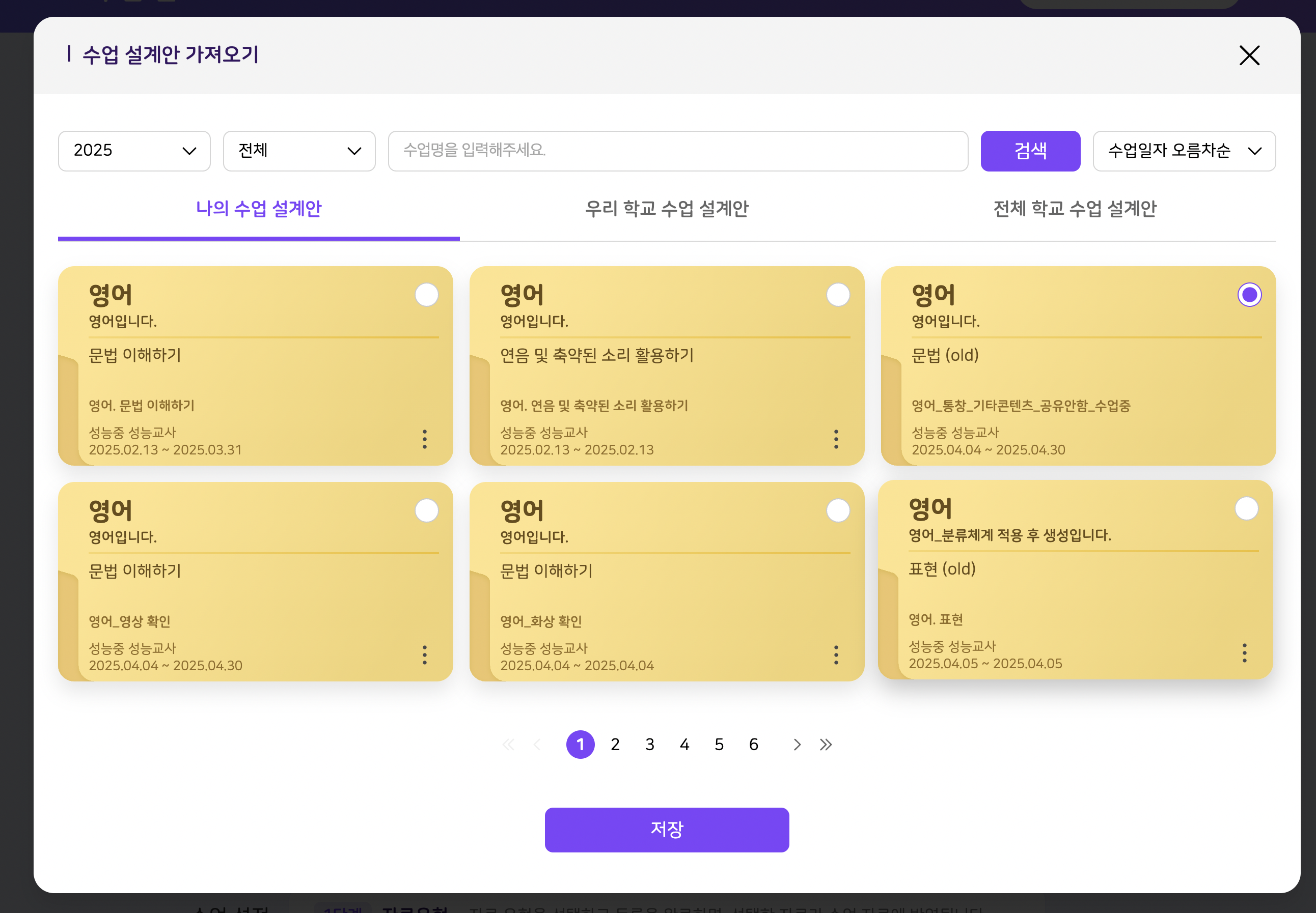 [상용] 구분류 복사해논 수업 설계하기시 error 발생 1. 과목 분류 초기화 안됨 - "old"라는 문구 붙어 있음 2. [저장] 클릭시 500 error 발생. 계정 : 25test1 경로 : 나의 수업 > "영어_구분류_복사" |
