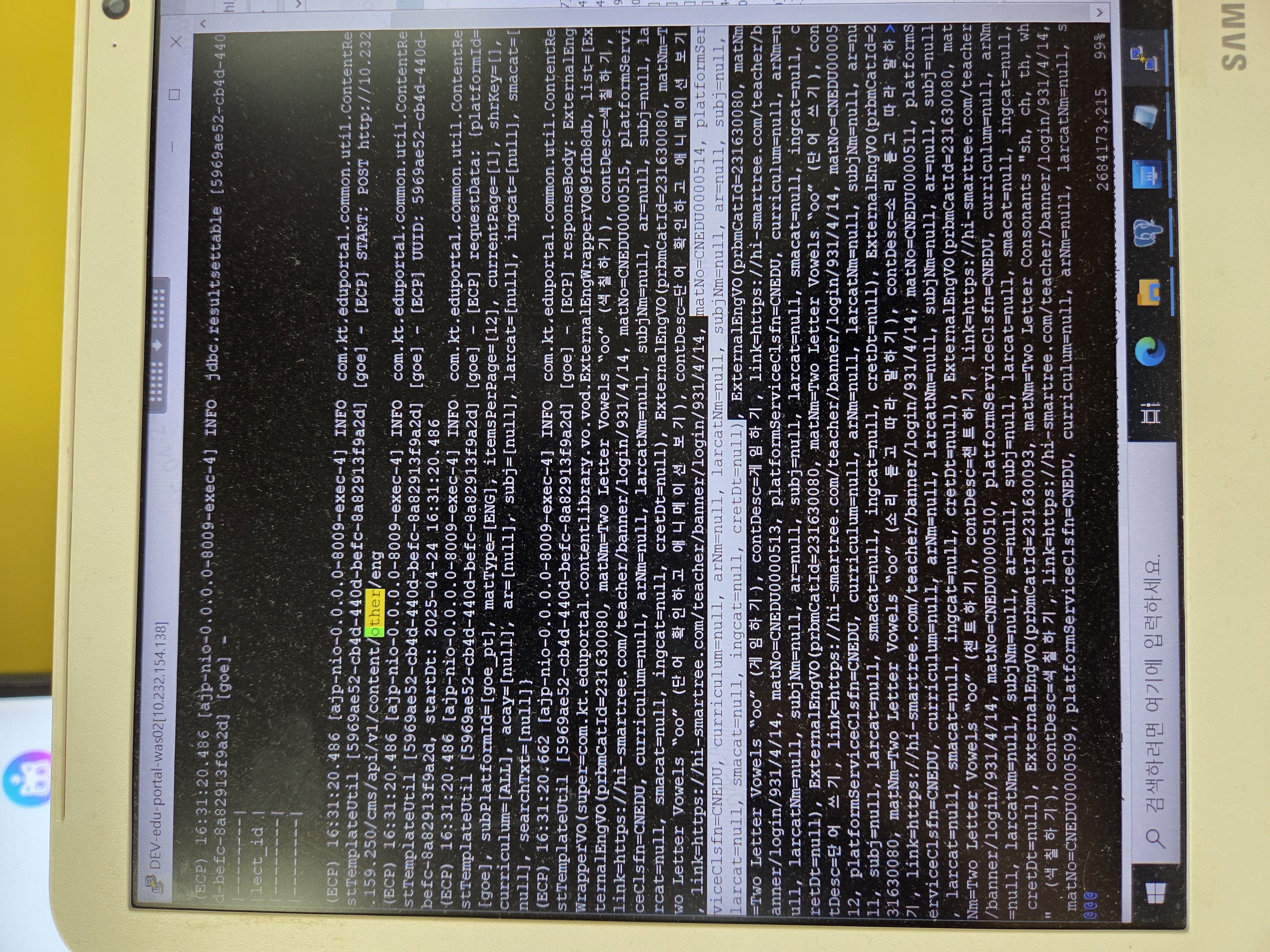ECP 에서 응답결과로 과목분류에 대한 값을 반환하고 있음을 확인하였습니다. 포탈쪽에서의 값 확인이 필요할 것 같습니다. |
