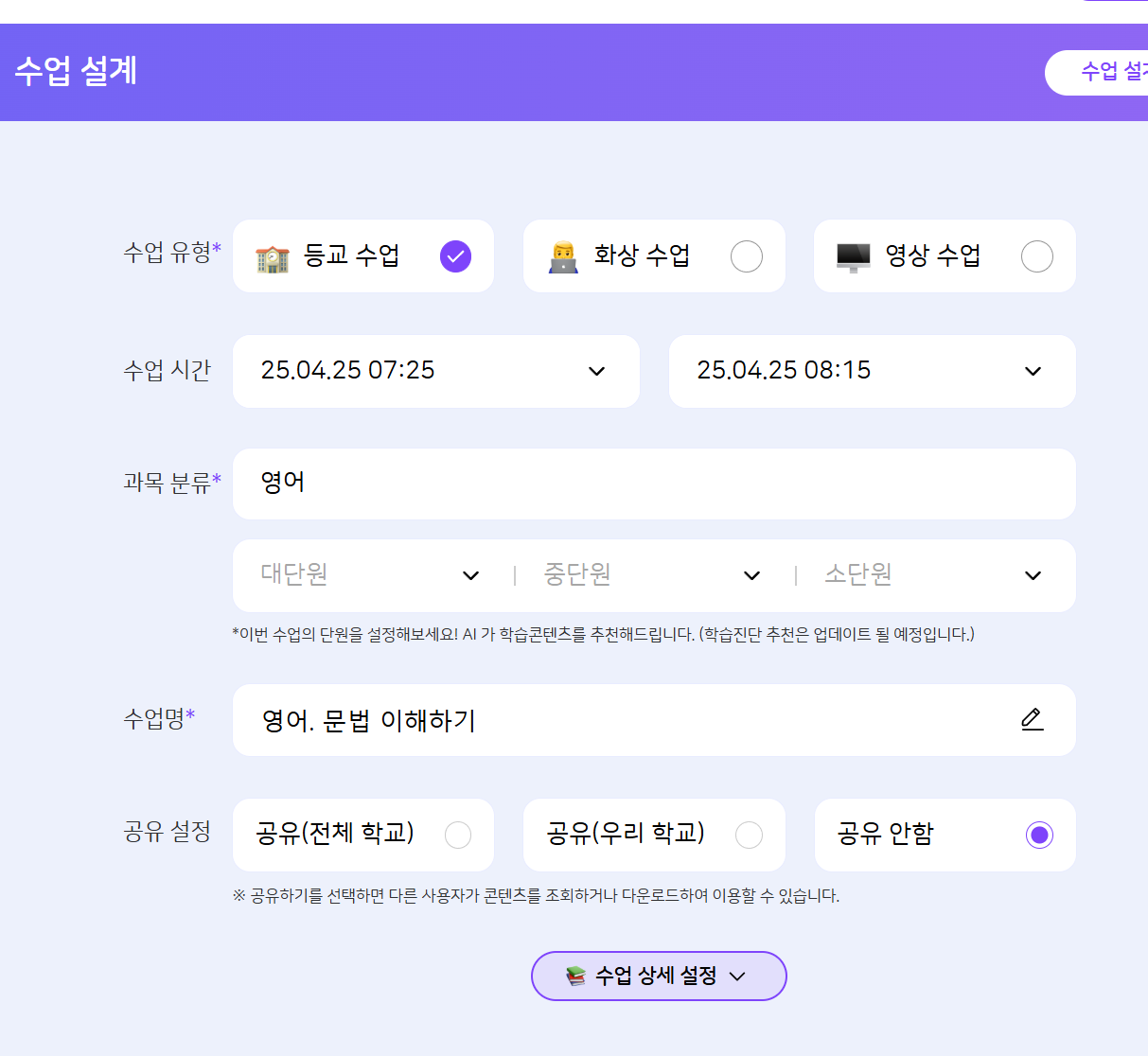 | Description | 구 분류에 복사해둔 수업 > 설계하기 > 초기화된 과목 분류 클릭 > 대단원, 중단원 반응 없음 | ||||