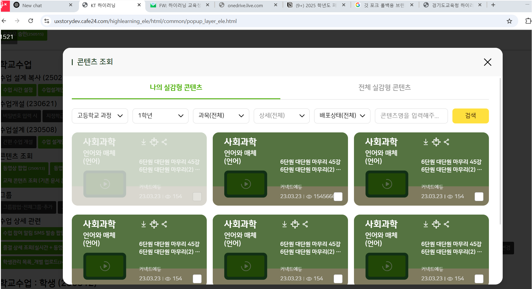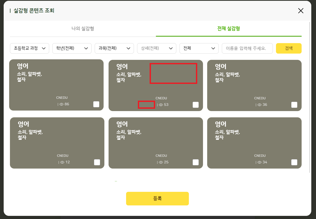 | Steps To Reproduce | 1. 교사 로그인 2. 수업 설계 > 자료 유형 > 실감형 3. 실감형 콘텐츠 조회 > 전체 실감형 탭 클릭 | ||||