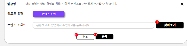 | Description | 수업 설계에서 실감형 콘텐츠 조회 placeholder 기획과 상이 TB : 콘텐츠 조회 팝업에서 콘텐츠를 등록하세요. 기획서(2025-04-15) p.147 : 콘텐츠 조회 팝업에서 수업자료를 등록하세요. | ||||