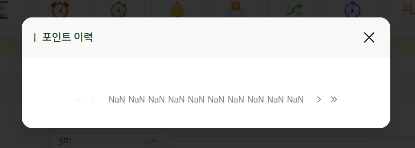 5/21 확인 결과 1. 담임 교사와 과목 교사의 포인트 관리 위치가 서로 다름 -> 기획 확인 필요 2. 담임 교사는 해당 학생 보유 포인트 현황에 호버 시 '포인트 이력 확인' 버튼 노출되는데 과목 교사는 버튼 미노출 됨 -> 과목 교사에게도 '포인트 이력 확인' 버튼 노출되나, 클릭 시 'Nan' 팝업 노출 |