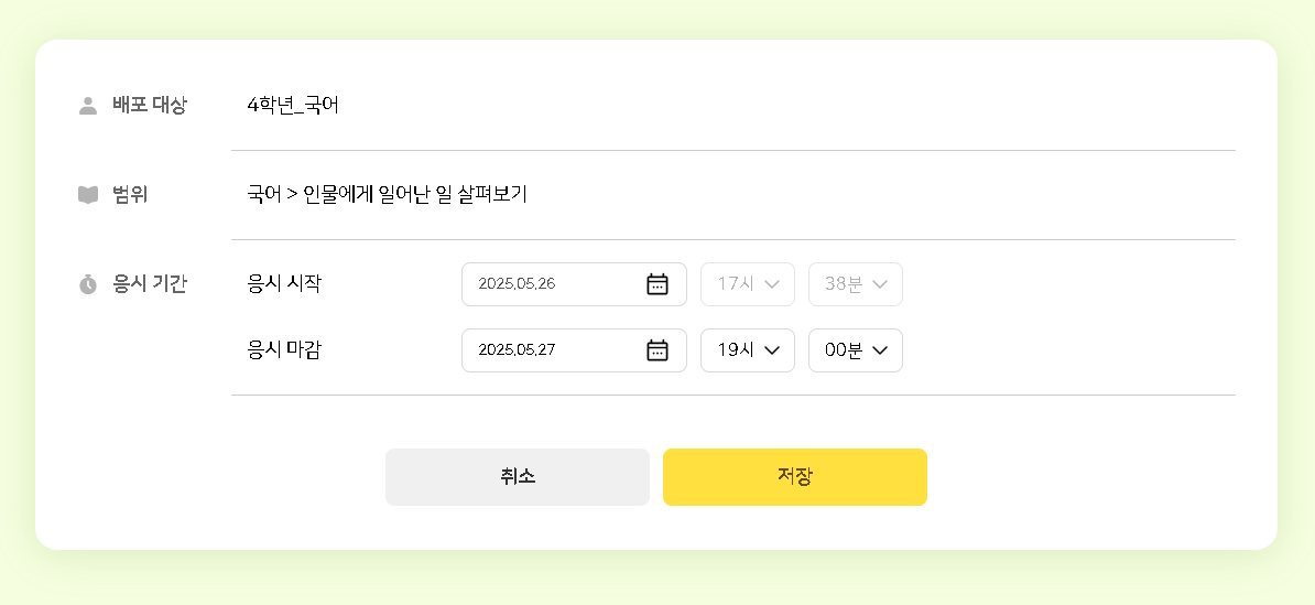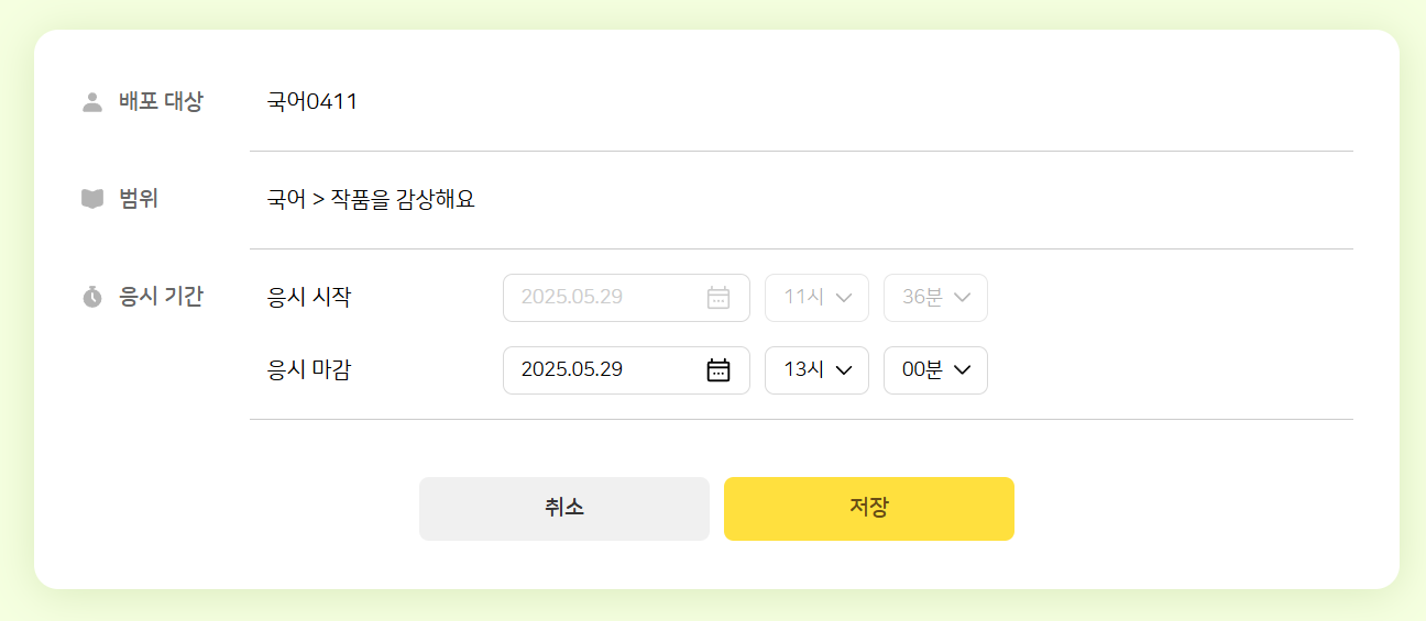 | Summary | 0000959: AI 학습진단 - 기간 수정 페이지 : 진행중일경우 응시 시작 영역 비활성화 안되는 현상 | ||||