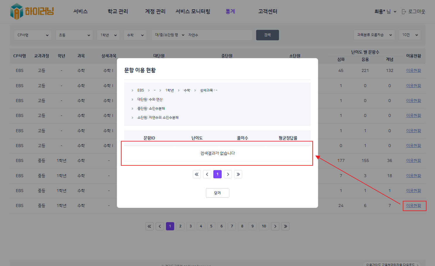 | Description | 문항 이용 현황 팝업에서 문항 목록이 출력되지 않는 현상입니다. | ||||