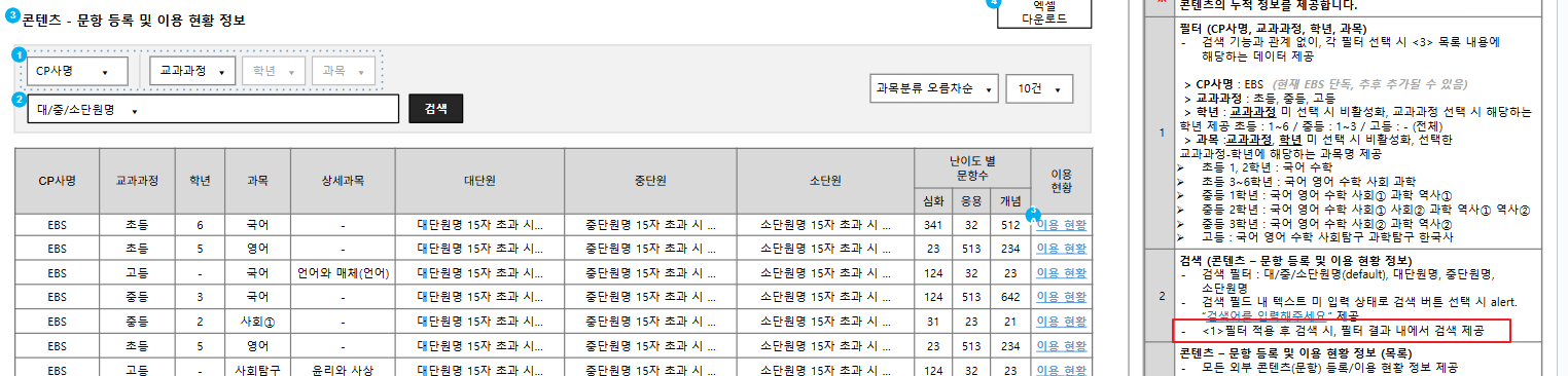 | Description | 문항 콘텐츠 등록 및 이용 현황 정보 영역에서 필터 적용 후 검색 시 필터가 적용되지 않은 결과가 출력됩니다. | ||||