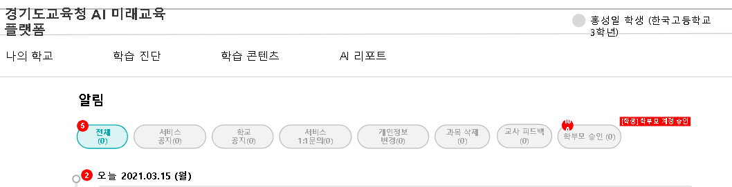 | Description | 학부모 계정 승인 - 학생 계정 - 알림 - 학부모 승인 탭 위치 퍼블과 상이함 학부모 승인 탭이 가장 마지막에 위치해야함. | ||||