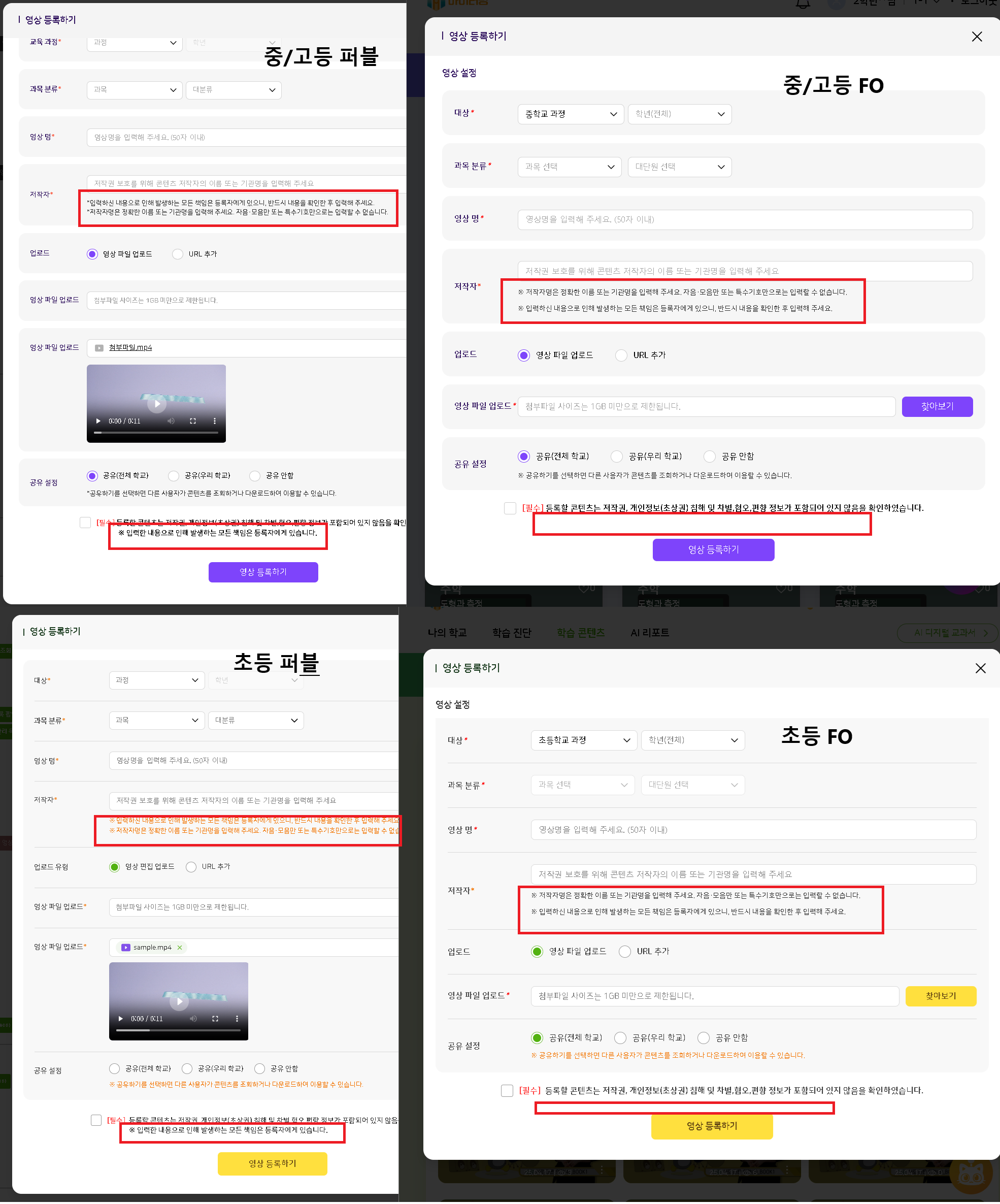 | Steps To Reproduce | 1. 교사 로그인 2. 영상, 교재 등록 시 저작자 하단 문구 확인 | ||||